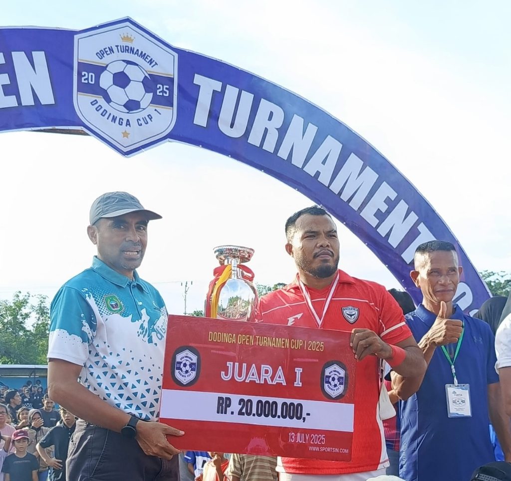 JAILOLO SELATAN – Kepala Dinas Kepemudaan dan Olahraga Provinsi Maluku Utara (Kadispora Malut), Ir.Saifuddin Djuba mewakili Gubernur Maluku Utara pada penutupan Dodinga Open Turnamen Tahun 2025, pada hari Minggu tanggal 13 Juni 2025. Dalam sambutannya, Kadispora Malut menyampaikan apresiasi kepada insan olahraga Desa Dodinga Kecamatan Jailolo Selatan yang tetap konsisten melaksanakan kompetisi sepakbola. Menurutnya, kompetisi seperti ini akan melahirkan bakat-bakat baru yang bakal mampu berprestasi khususnya di bidang olahraga sepakbola. Saifuddin Djuba juga berharap agar para pemain yang berkompetisi dapat menjaga sikap sportivitas demi tercipta persaingan yang sehat untuk meraih prestasi terbaik.